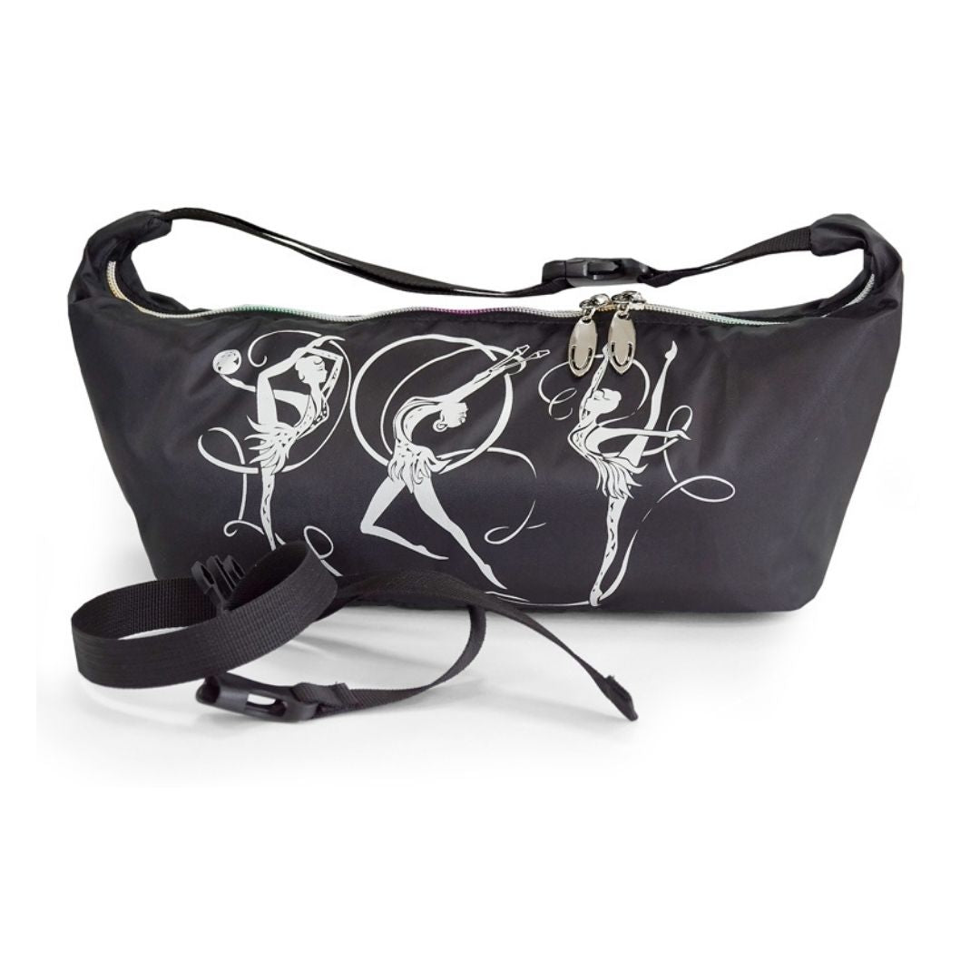 Keep all your essentials safe in these beautiful cosmetics bags. Easy to take to the lessons, competitions, or simply keep everything nice and tidy at home. Gymnasts exercise print, one main compartment inside, 3 zipped pockets, 3 more mesh pockets. A clip-on strap that can be made shorter or longer.