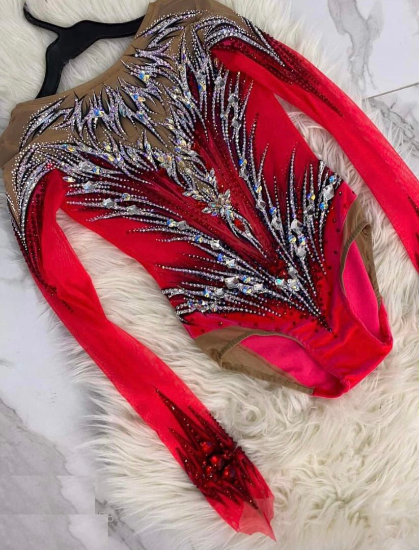 This gorgeous brand new leotard with 80% highest quality stones and 20% DMC is approximately for 142-149 cm and for a girl 9-11 years old. Watch a detailed VIDEO of the leotard here