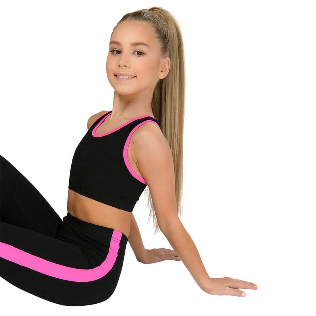 A short tank top for rhythmic gymnastics and dance. Material is soft, breathable, and ideal for those with sensitive skin. Can be matched with leggings or shorts in matching colors.